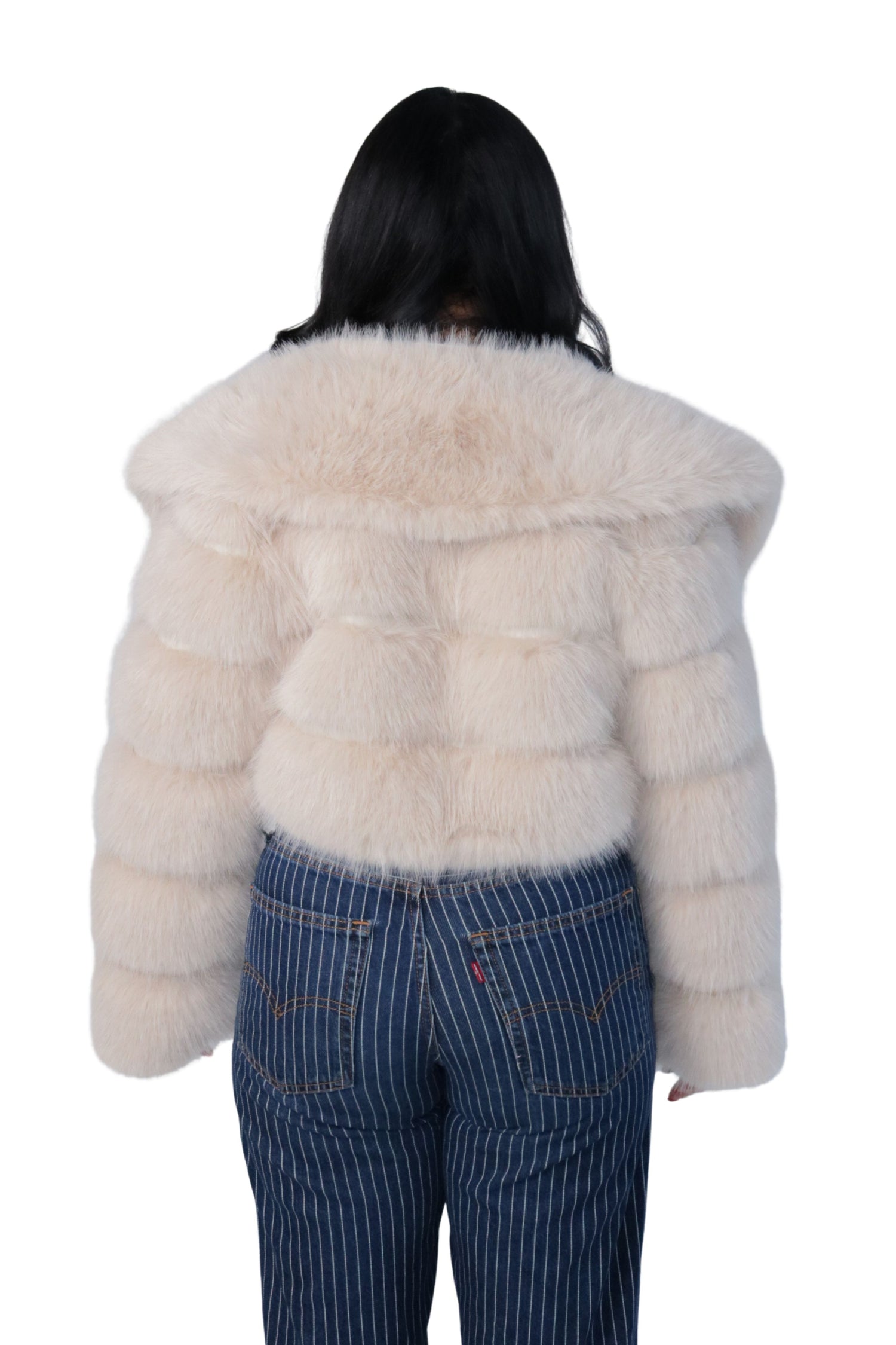 The perfect addition of luxurious feeling to your winter wardrobe. Our new faux-fur jacket with a tiered design, oversized collar, and cropped fit is cozy, chic, and easy to style.