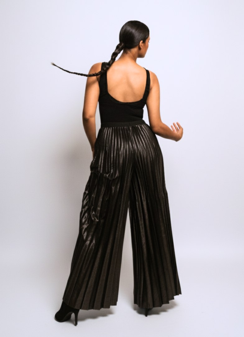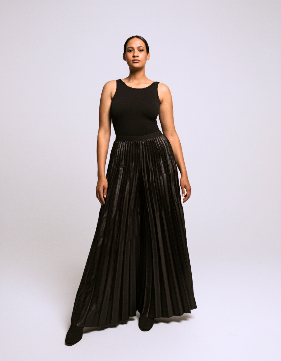 These Pleated Pants feature a high waist and elastic waistband for a comfortable, flattering fit. Designed for ease and style, they are a versatile addition to any wardrobe. Available now for pre-sale.